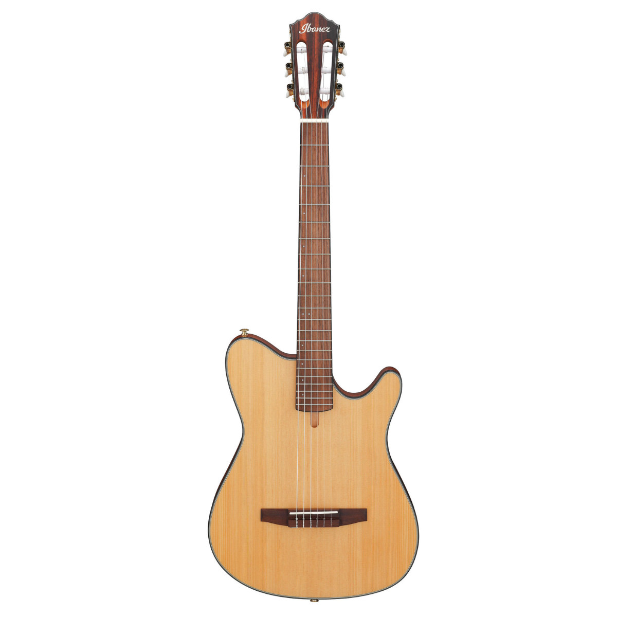 Violão de 6 cordas nylon, eletroacústico, Ibanez FRH Series modelo FRH10N-NTF, corpo com tampo sólido em Sitka Spruce, fundo e laterais em Sapele com acabamento Natural Flat com Side Soundport.